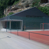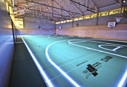 Die Mehrzweckturnhalle für das Internat Schloss Stein liegt in unmittelbarer Nähe zu dem historischem Schloss und einem der wichtigsten Denkmälern Bayerns, der Hermitage. Das Gebäude sollte sich dem Schloss unterordnen und den Blick auf die Hermitage freilassen. Das Hauptgebäude umfasst eine Fläche von ca. 38 x 17,50 Meter, mit einer Spielfeldgröße von 15 x 27 Metern. Eine Weltneuheit stellt der dafür entwickelte Glasschwingboden der Firma Babinsky dar. Die Spielfeldmarkierungen können über LEDs einzeln zugeschaltet werden.